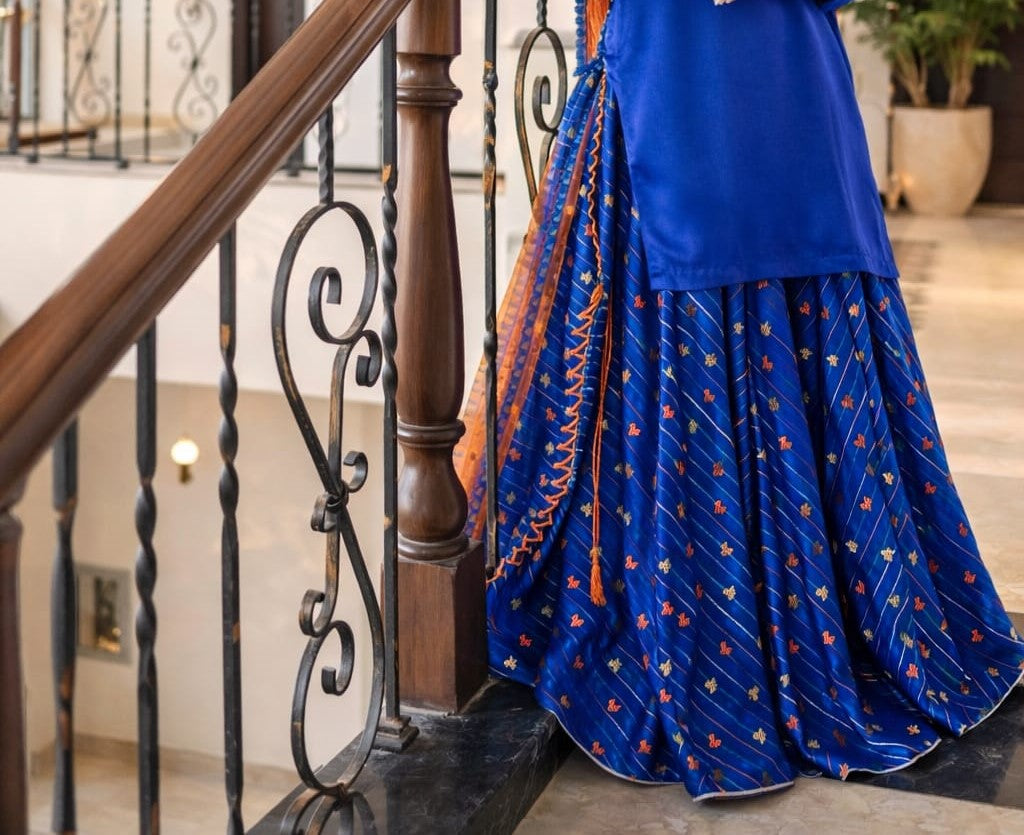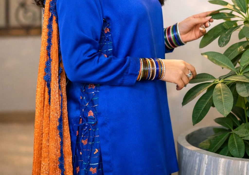 Step into festive elegance with our Eid Glam Sharara Suit, a timeless 3-piece outfit in rich royal blue. Featuring a luxurious Pure Jamawar Sharara (4.5 yards) and a soft Silk Shirt (2 yards), this ensemble offers a regal flare with graceful comfort—perfect for Eid, weddings, and special occasions. 💙
